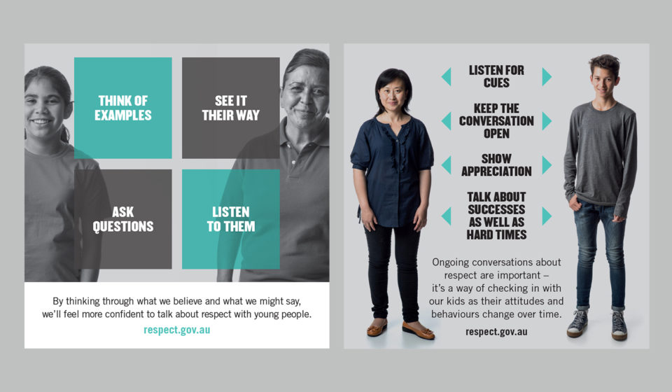 Fenton created a strategy using a storytelling methodology to show how adults can unintentionally allow the cycle of violence to continue when they excuse disrespectful behaviours of young people. The strategy is multifaceted, weaving this narrative through the campaign website featuring resources for influencers; media activities creating many voices on the issue; social media engagement sparking ongoing conversations and stakeholder support and activation exemplifying the whole-of-community approach required.